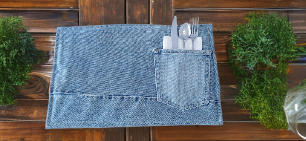 Bring a touch of rustic style and clever functionality to your outdoor dining with this set of four handcrafted denim picnic placemats. Each placemat is made from sturdy, repurposed denim that adds a classic, casual feel while offering durability for any picnic adventure. A built‑in pocket is stitched right into the design, perfectly sized to hold your napkin and utensils so everything stays neatly in place, even when the breeze picks up.