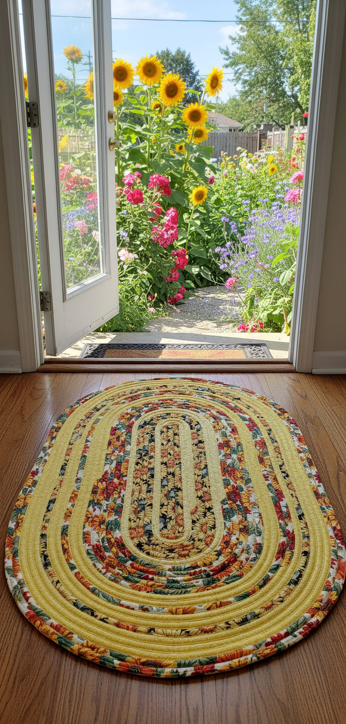 sunflowers and sunshine (above) oval rug. 40 strip rug.